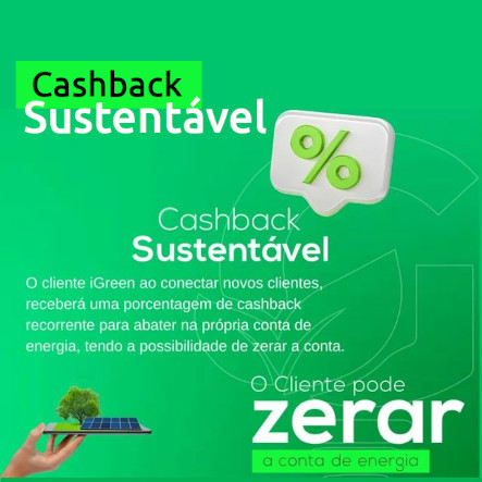Com iGreen Cashback, conforme você indica novos clientes, 2% do valor da fatura dele virá como cashback para você, permitindo que em pouco tempo você consiga ZERAR sua conta.